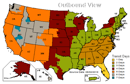 USE THIS MAP TO DETERMINE UPS GROUND TRANSIT TIME FROM FLORIDA (FL) TO YOUR HOME OR BUSINESS.